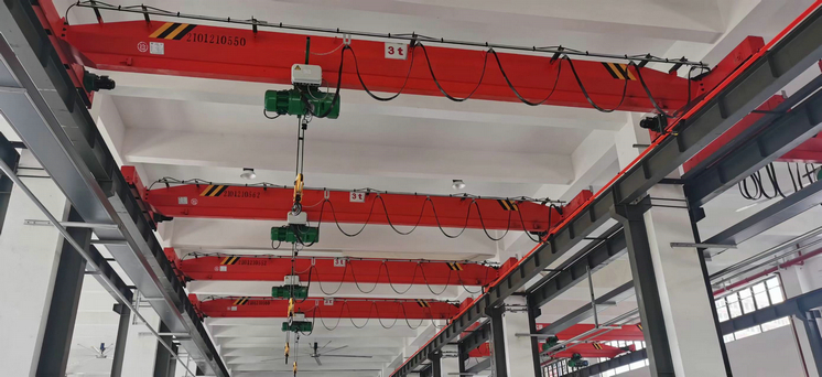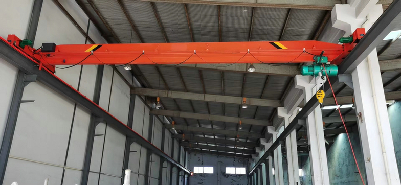 ?電動(dòng)單梁起重機(jī)由鋼板與工字鋼組焊成的主梁、端梁、電動(dòng)葫蘆及運(yùn)行機(jī)構(gòu)組成,電動(dòng)葫蘆沿主梁工字鋼下翼緣運(yùn)行,完成物品的吊運(yùn)工作,具有結(jié)構(gòu)輕巧、安裝維護(hù)方便等特點(diǎn),廣泛應(yīng)用于工廠、倉庫、料場等不同場合吊運(yùn)貨物,禁止在易燃、易爆、腐蝕性介質(zhì)環(huán)境中使用。工作級(jí)別為A3-A5。操作方式設(shè)有地面手柄、無線遙控和司機(jī)室三種操作形式。駕駛室有開式、閉式兩種。大車運(yùn)行采用分別驅(qū)動(dòng)形式,錐型電機(jī)制動(dòng),開式齒輪傳動(dòng)。
