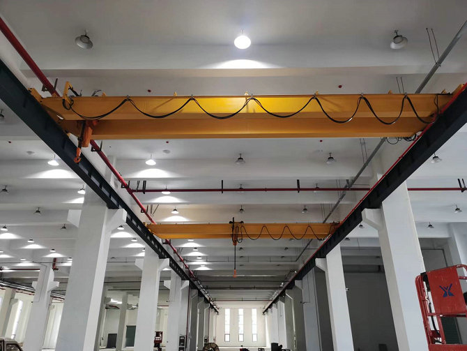 電動(dòng)葫蘆橋式起重機(jī)由箱形橋架、大車運(yùn)行機(jī)構(gòu)、小車、電氣設(shè)備四部分組成,采用固定式電動(dòng)葫蘆安裝在小車架上作起升機(jī)構(gòu),小車運(yùn)行采用LD型傳動(dòng),大車運(yùn)行分LD型傳動(dòng)和QD型傳動(dòng)兩種。結(jié)構(gòu)簡便輕巧,具有整體高度小,自重輕等特點(diǎn),適用于中小起重量范圍內(nèi)的廠礦、車間及倉庫等工作場(chǎng)所。操作方式設(shè)有地面手柄、無線遙控和司機(jī)室三種操作形式。駕駛室有開式、閉式兩種。
