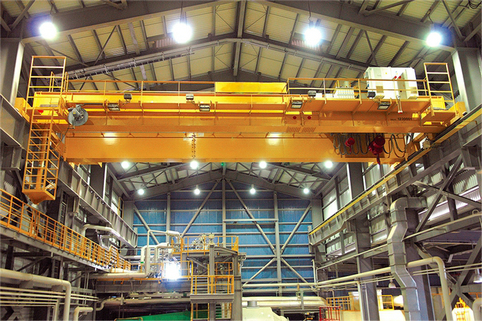 雙小車橋式起重機與吊鉤橋式起重機的區(qū)別在于主梁上設置兩臺小車,雙小車可以單獨起升,也可單獨運行;當需要抬吊長件物品時,通過控制臺上的轉(zhuǎn)換開關,實現(xiàn)同步起升,同步運行