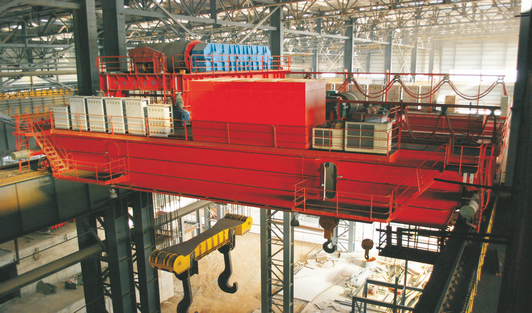 鑄造橋式起重機是鋼廠冶煉車間的主要起重運輸設(shè)備,用于冶煉過程中液態(tài)金屬的轉(zhuǎn)運、澆注及兌鐵水等作業(yè)。125t以下一般為YZ型雙梁結(jié)構(gòu)。125t以上一般為YZS型四梁結(jié)構(gòu)。